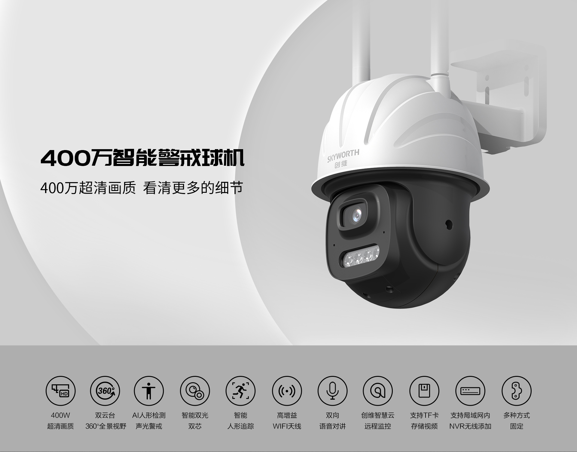| 名称 | 产品名 | 创维400万双光源警戒球机 |